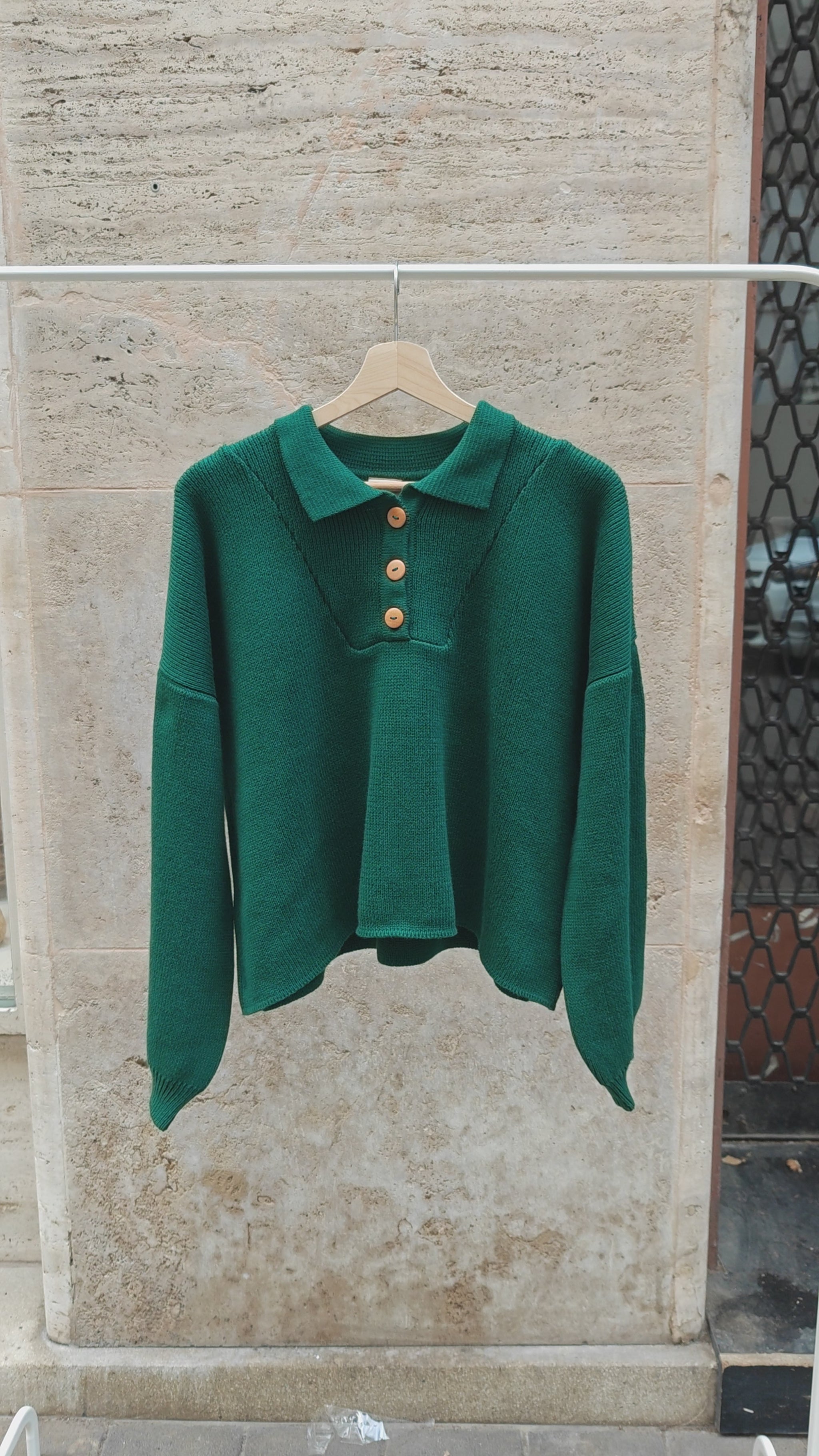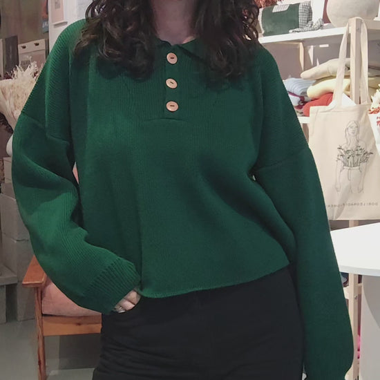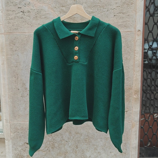 The LEISURE jumper combines comfort with playful sophistication. Knitted from organic cotton, it features a charming collar, a flattering slightly A-line shape, and subtle balloon sleeves for a soft, feminine touch. Effortless to layer and endlessly versatile, it’s the piece you’ll reach for on both easy mornings and polished evenings.