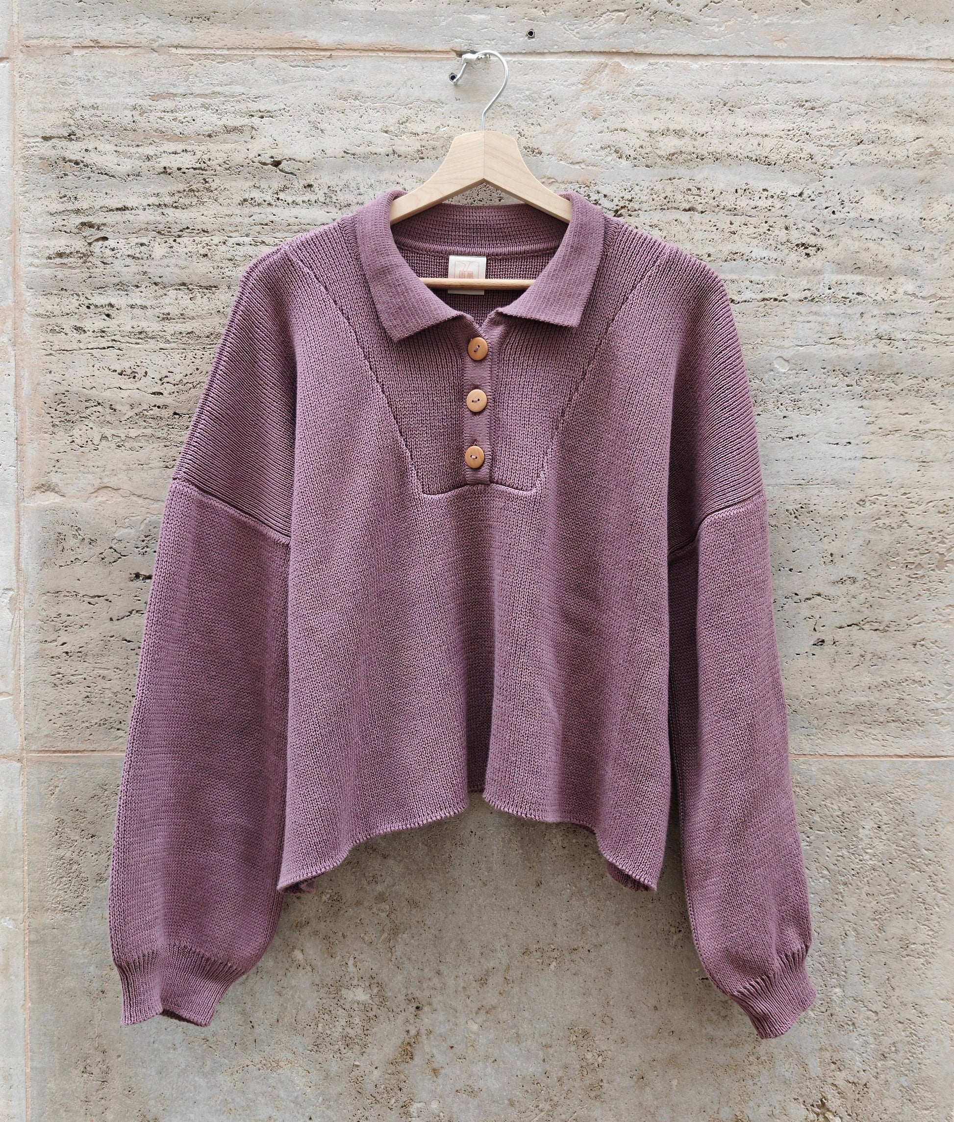 The LEISURE jumper combines comfort with playful sophistication. Knitted from organic cotton, it features a charming collar, a flattering slightly A-line shape, and subtle balloon sleeves for a soft, feminine touch. Effortless to layer and endlessly versatile, it’s the piece you’ll reach for on both easy mornings and polished evenings.