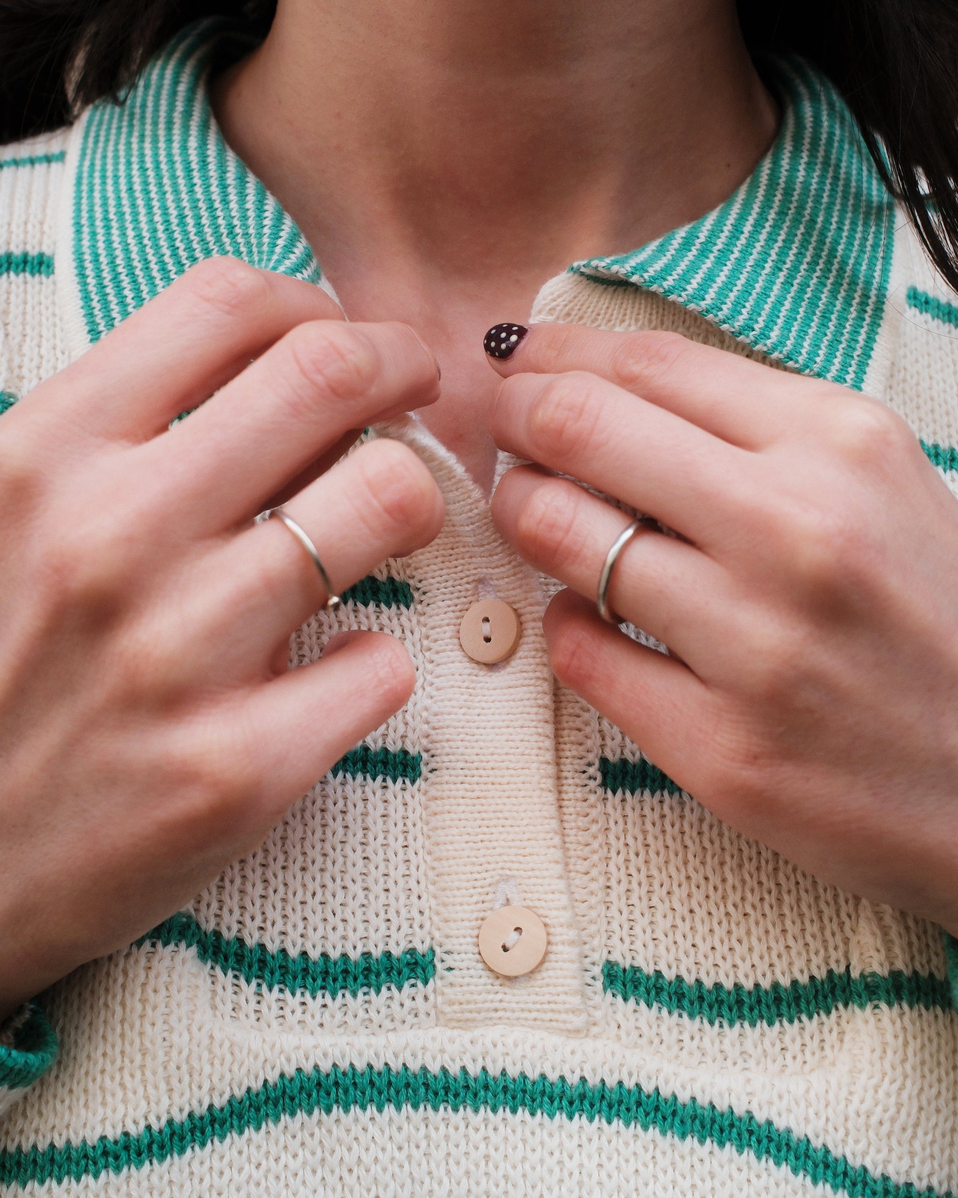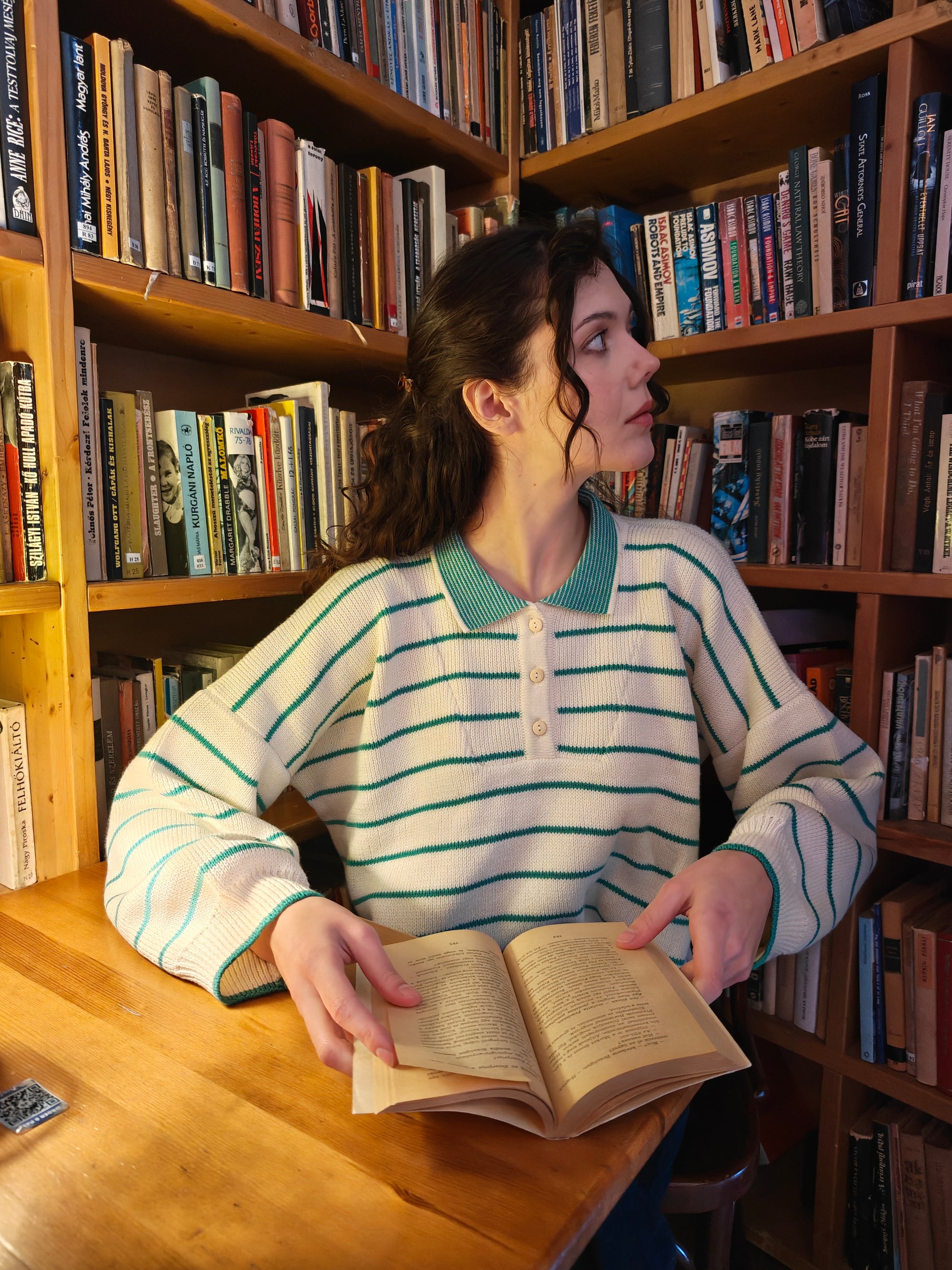 The LEISURE jumper combines comfort with playful sophistication. Knitted from organic cotton, it features a charming collar, a flattering slightly A-line shape, and subtle balloon sleeves for a soft, feminine touch. Effortless to layer and endlessly versatile, it’s the piece you’ll reach for on both easy mornings and polished evenings.