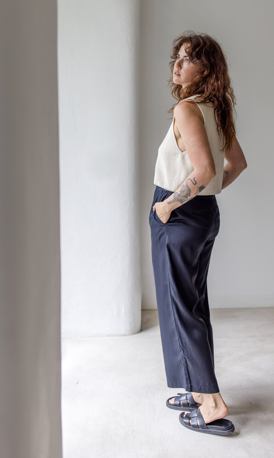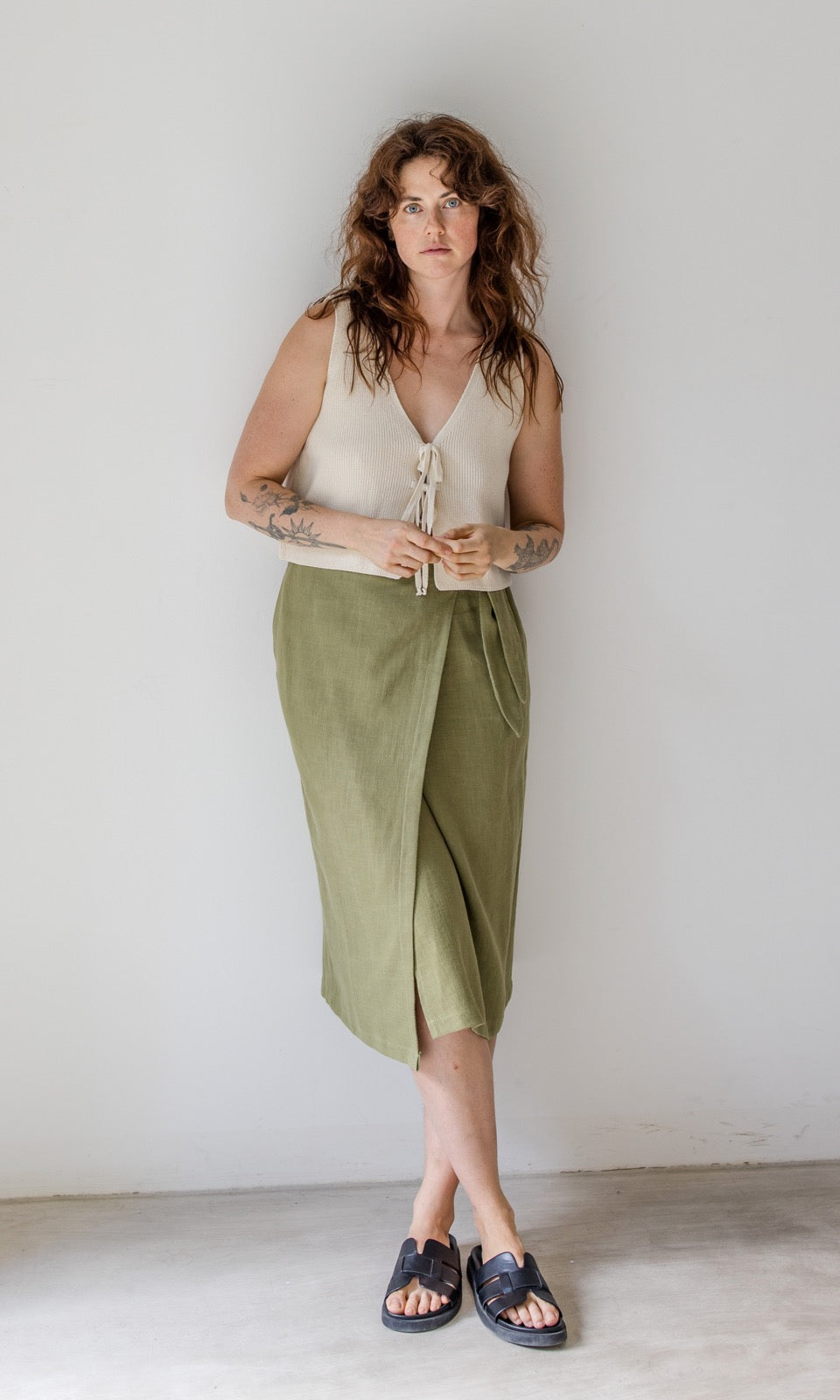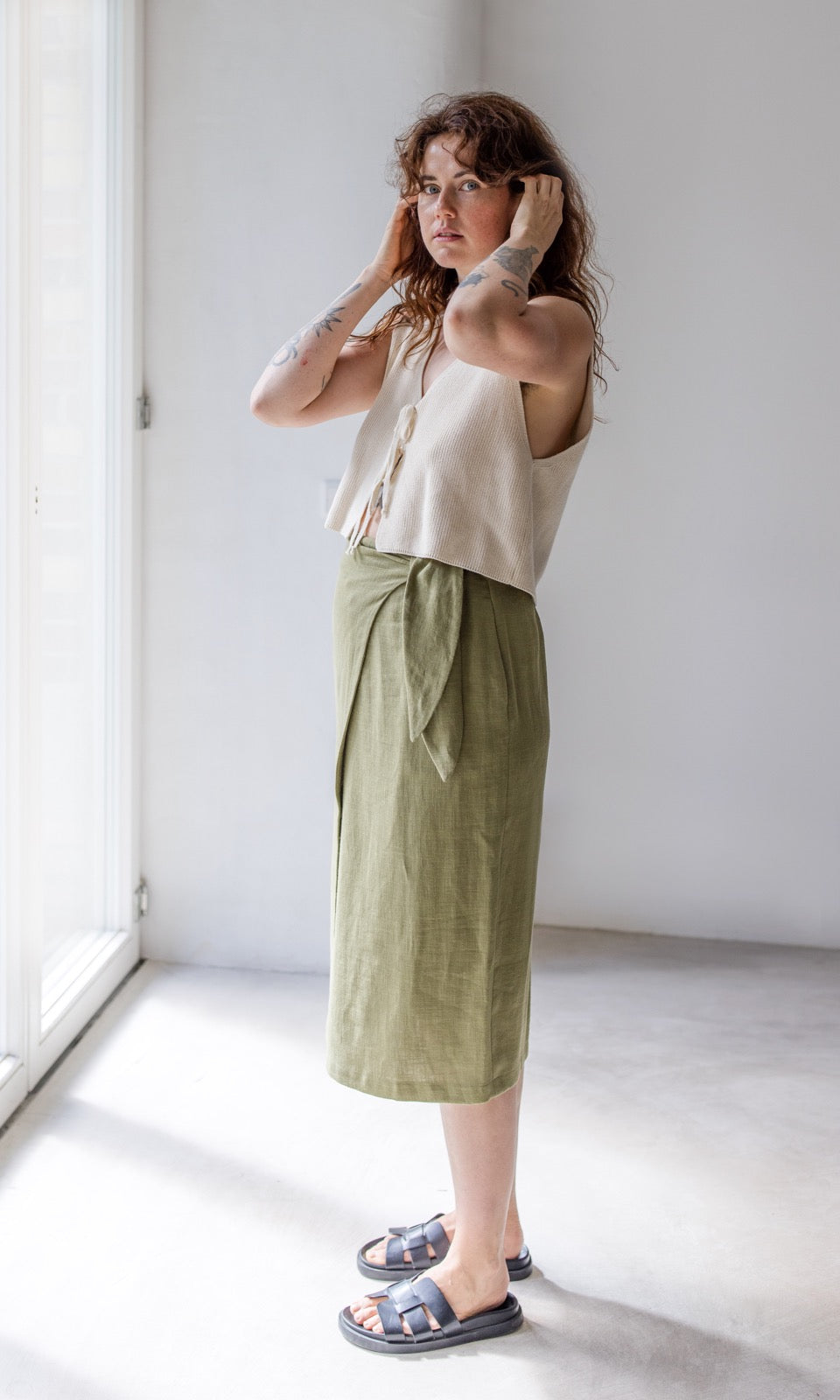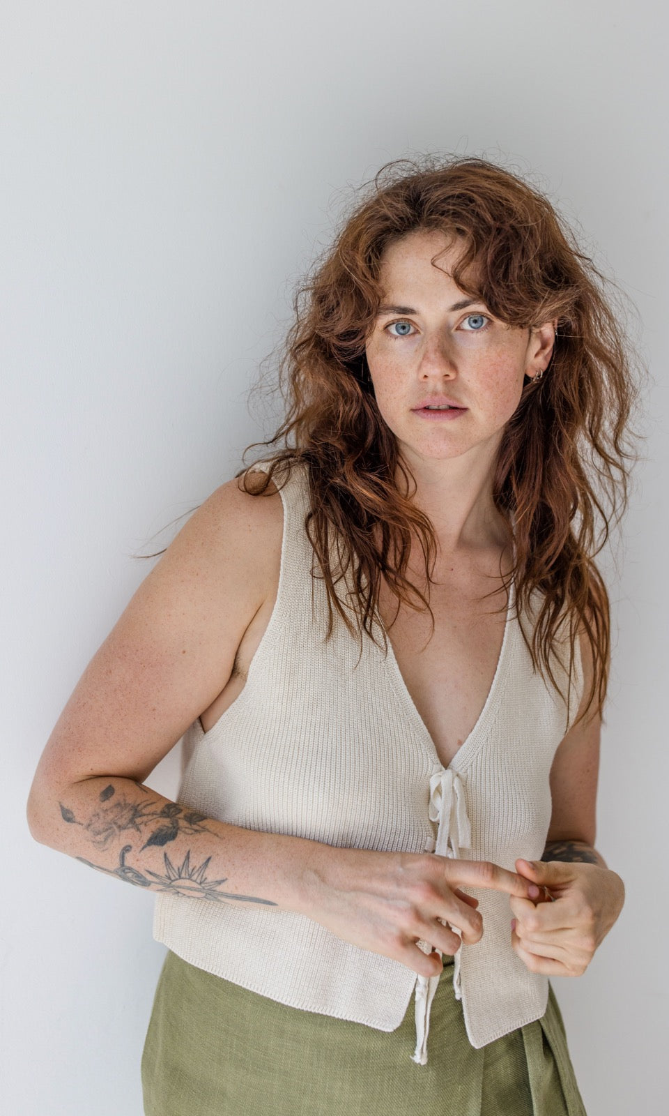 This wonderful knitted top, made from soft organic cotton, was created in collaboration with abricot coco. Together, we designed a unique cut and had it produced in small quantities at a family-run textile workshop in Hungary. The bow details and the exceptional knitting pattern make this vest a truly special favorite piece. We designed the limited top in the colors cream, basil, and lilac.